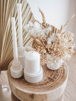 Available in two sizes, you can curate the perfect look for your desired setting. Whether used individually or paired together, these candle holders create a cohesive and harmonious arrangement.