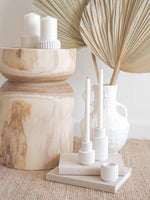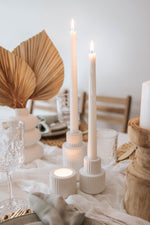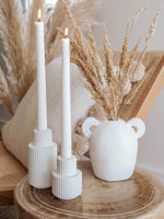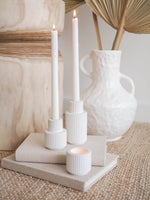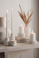 Introducing our Palmer Trio - a harmonious set of candle holders designed to elevate your home and create a serene ambiance. This carefully curated collection features three exquisite candle holders, with a soft ribbed texture, bringing a touch of modern elegance to any space.